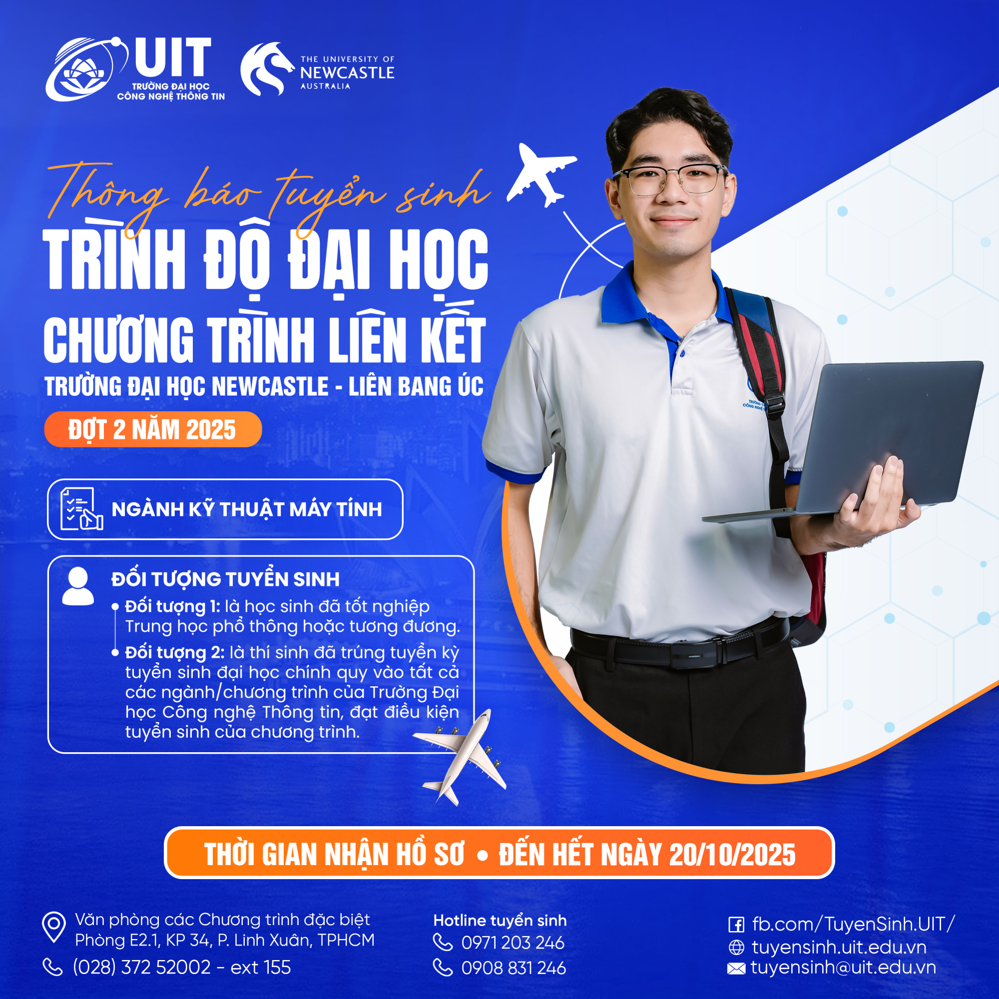 Nắm bắt nhu cầu đó, từ năm 2025, Trường Đại học Công nghệ Thông tin, ĐHQG-HCM (UIT) chính thức triển khai chương trình liên kết quốc tế 2+2 với Trường Đại học Newcastle (The University of Newcastle - UoN), Úc trong lĩnh vực Kỹ thuật Máy tính (Computer Systems Engineering - Honours). Đây là chương trình đào tạo tiên phong, kết hợp thế mạnh của hai trường đại học uy tín, hứa hẹn mang lại cho sinh viên cơ hội học tập, nghiên cứu và làm việc trong môi trường toàn cầu.